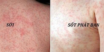 + Diễn tiến của ban sởi rất đặc trưng: ban nổi bắt đầu từ sau tai ( vùng gáy), sau đó lan ra mặt rồi dần xuống ngực bụng và cuối cùng là toàn thân. Ban của sởi là ban dạng sẩn ( ban gồ lên mặt da) sau khi hết sẽ để lại vệt thâm da đặc trưng được gọi là “vằn da hổ”.